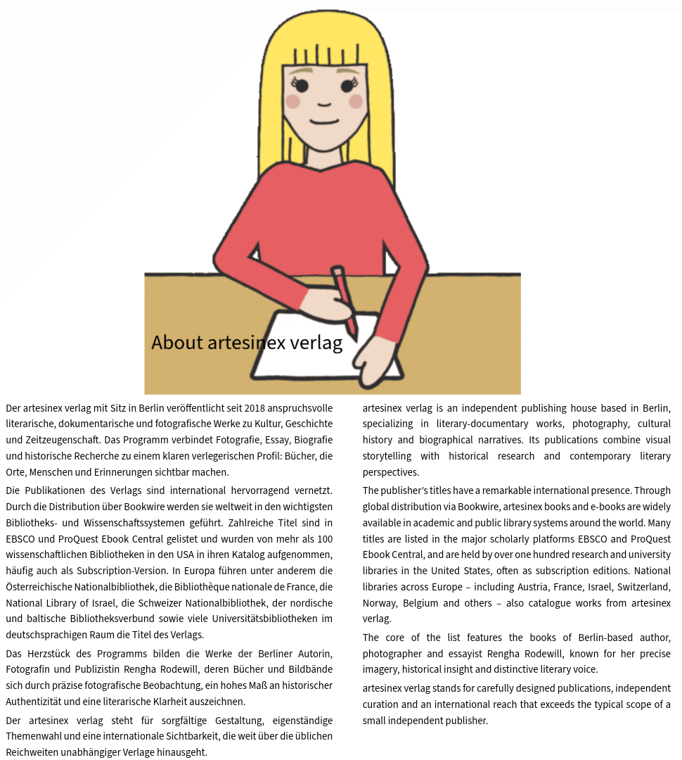 Die Spurensuche führt bis in Strittmatters letzte Berliner Wochen und zu ihrer Beerdigung 2011 – diese visuelle und textuelle Spurensuche wird ergänzt durch den Blick auf ihre literarische Bedeutung, die bis heute nachwirkt und vielen Leserinnen und Lesern Orientierung und Trost bietet.